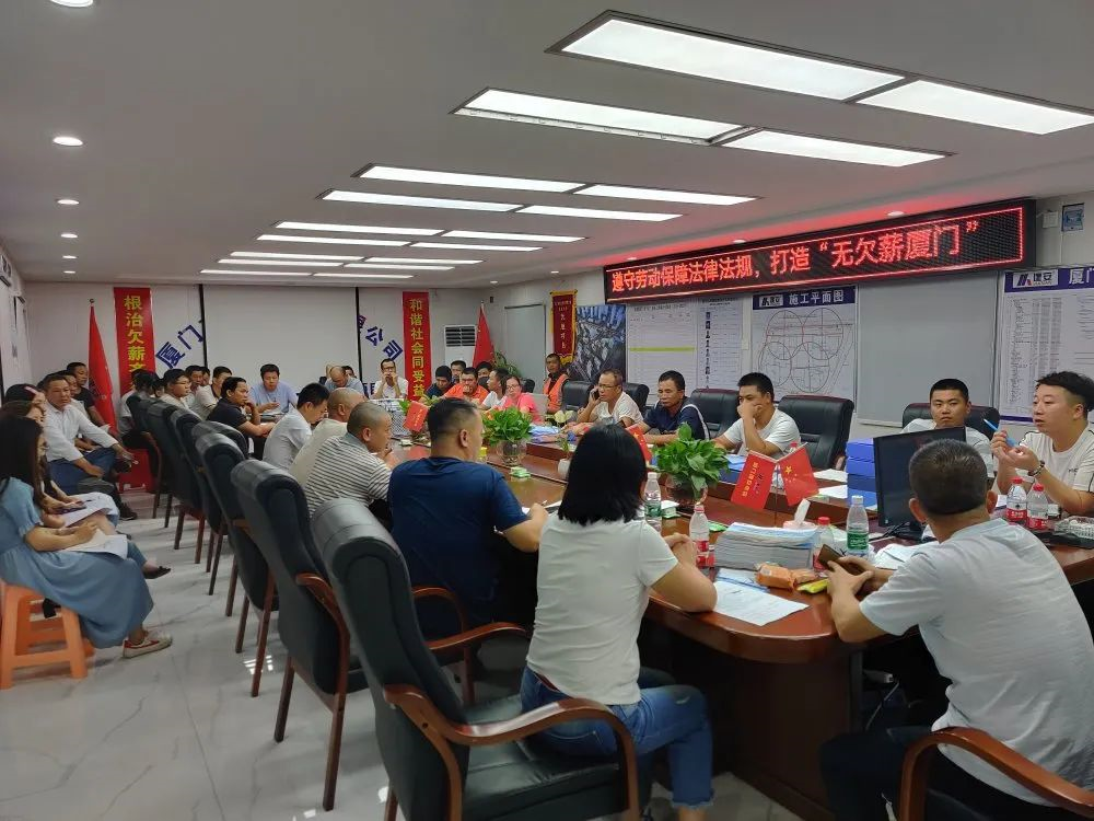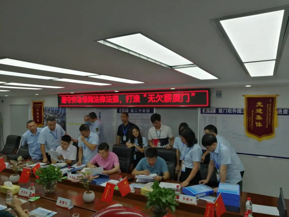8月28日上午,國務院農民工工作督察組蒞臨廈門建安集團軟件園三期F17地塊項目部,對2019年度保障農民工工資支付工作進行實地考核。省治欠辦及廈門治欠辦相關領導陪同檢查,集團董事長孫碧慶、總經(jīng)理孫貴琳及公司相關負責人、項目部人員共同迎接檢查。